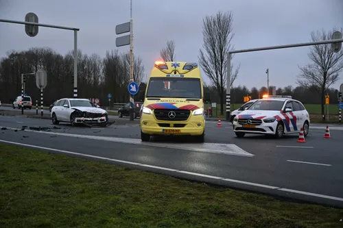 Twee auto's raakten elkaar frontaal. Hierna reed een van de automobilisten