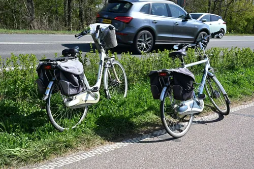 Provincialeweg in Castricum, op het fietspad, een fietsend echtpaar in botsing