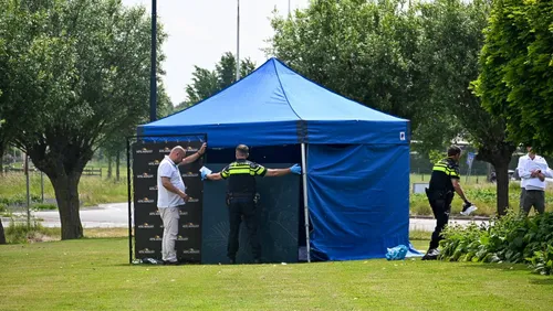 heeft plaatsgevonden. De politie heeft een blauwe tent over het slachtoffer