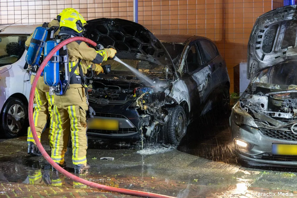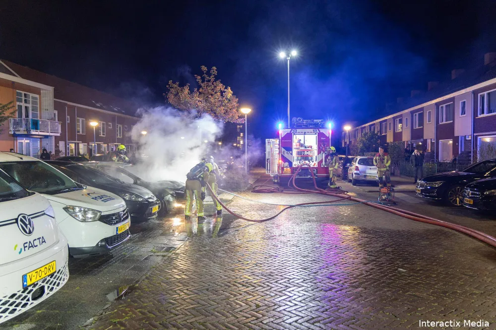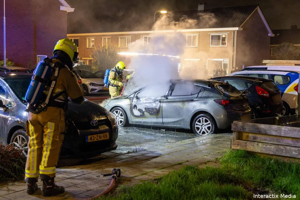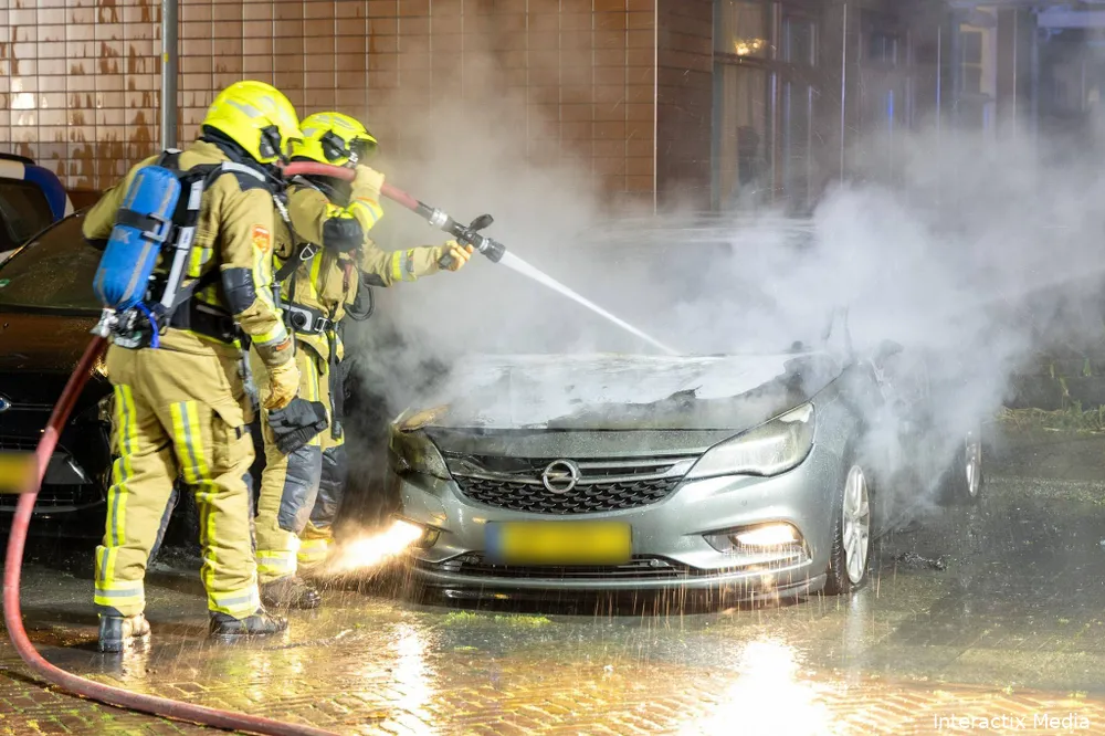 Bij aankomst stond het voertuig al volledig in brand. De brandweer kwam met een tankautospuit en een waterwagen ter plaatse en wist het vuur snel onder controle te krijgen. Desondanks brandde de auto volledig uit en raakte ook een naast geparkeerd voertuig zwaar beschadigd.