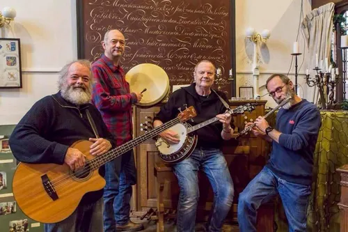 Ierse bouzouki, bodhran, mandoline, banjo, en tinwhistle. De band bestaat uit