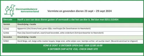 Vermiste en gevonden dieren gemeld bij of gevonden door